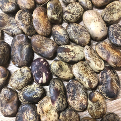 We received this wonderful garden treat from seedkeeper, Rowen White and are pleased with its early maturity. Black eyed peas are a crop that thrives in warm SE climates, so this strain appears adapted to the cooler night time temperatures here in the west. Pods are 6-8” long and presented above the foliage making harvest a breeze. They can be shelled fresh or dried. SSF