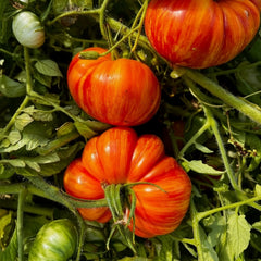 Introduced to Seed Savers Exchange by Ann Fuller of Indiana who received the seed from a man who brought it to the U.S. in 1987 from Sicily where his family had grown it for many years. Anne said its slices look like red-petaled flowers (rosso means “red”). Striking crayfish red costoluta (ribbed) fruits weigh up to 6 ounces. Firm pithy flesh is perfect for making tomato sauce or paste. Thin skin bruises easily.